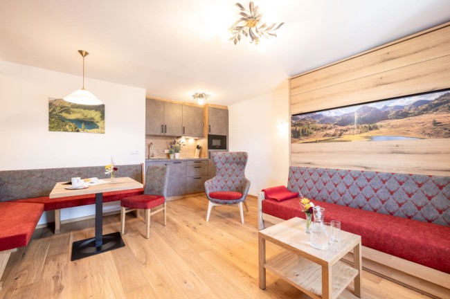 Die Preise der Familienappartements Örglwirt's Gut und der Ferienwohnungen im Landhaus Santner verstehen sich ohne Verpflegung. Auch hier könnten Sie sich selbst versorgen. Das Frühstücksbuffet oder 4-Gang-Genießer-Halbpension können natürlich gerne dazugebucht werden.